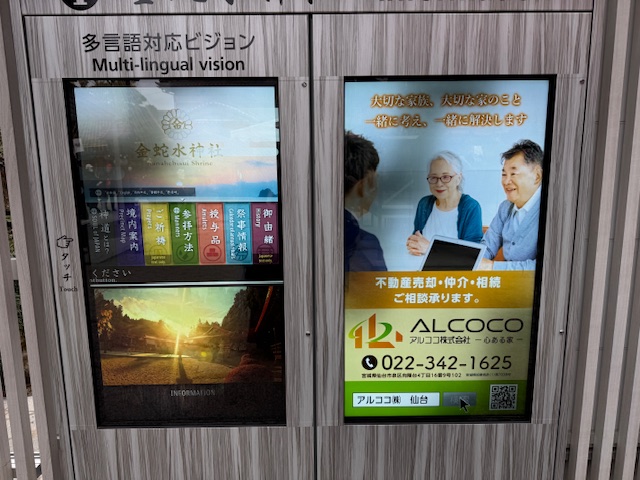 金蛇水神社さんの境内にあるデジタルサイネージ広告に、